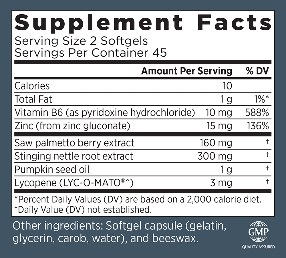 Dual Defense Prostate Support is the only formula with the complete combination of stinging nettle root, lycopene, saw palmetto, and pumpkin seed oil in scientifically studied doses known to restore hormonal equilibrium and prostate health from the inside.